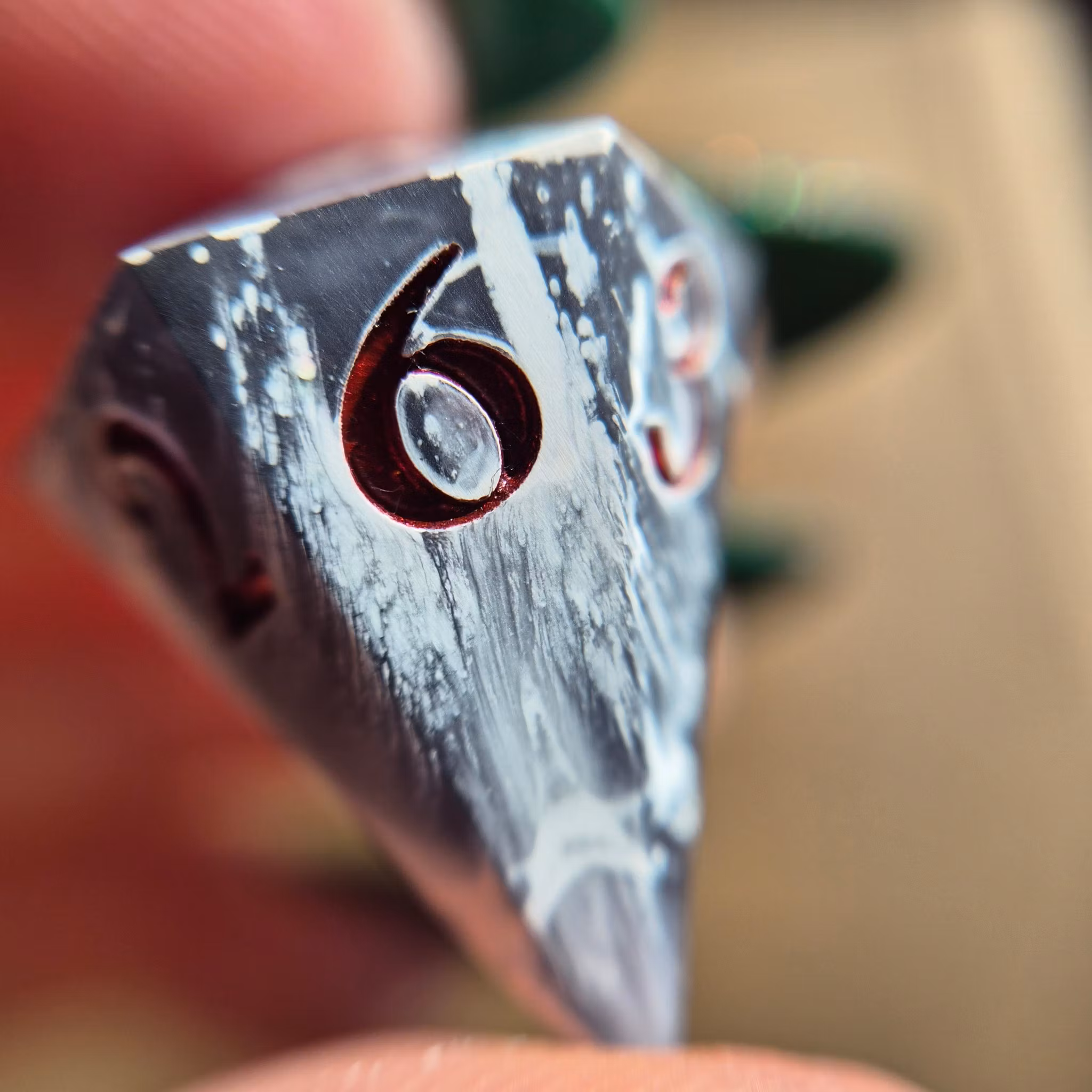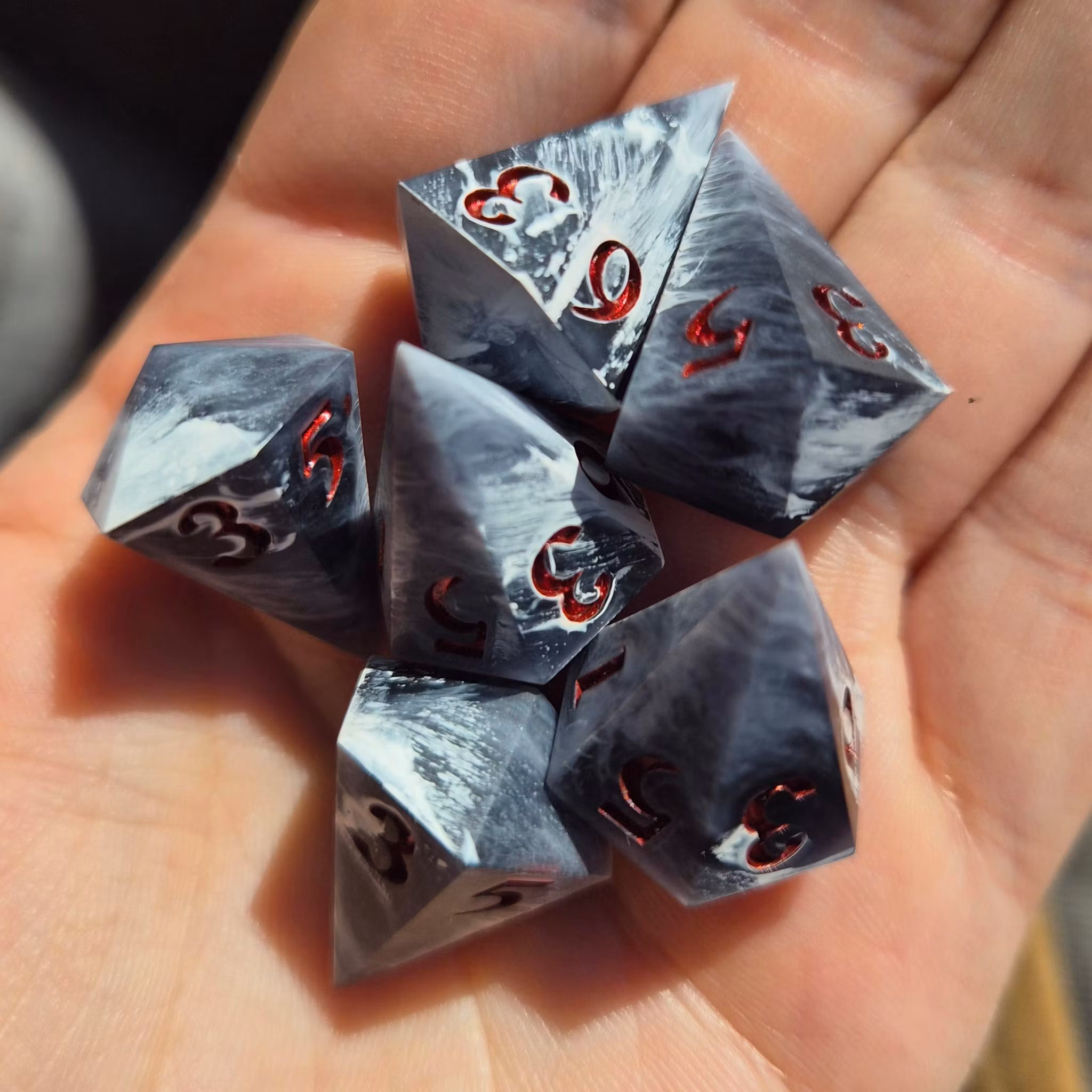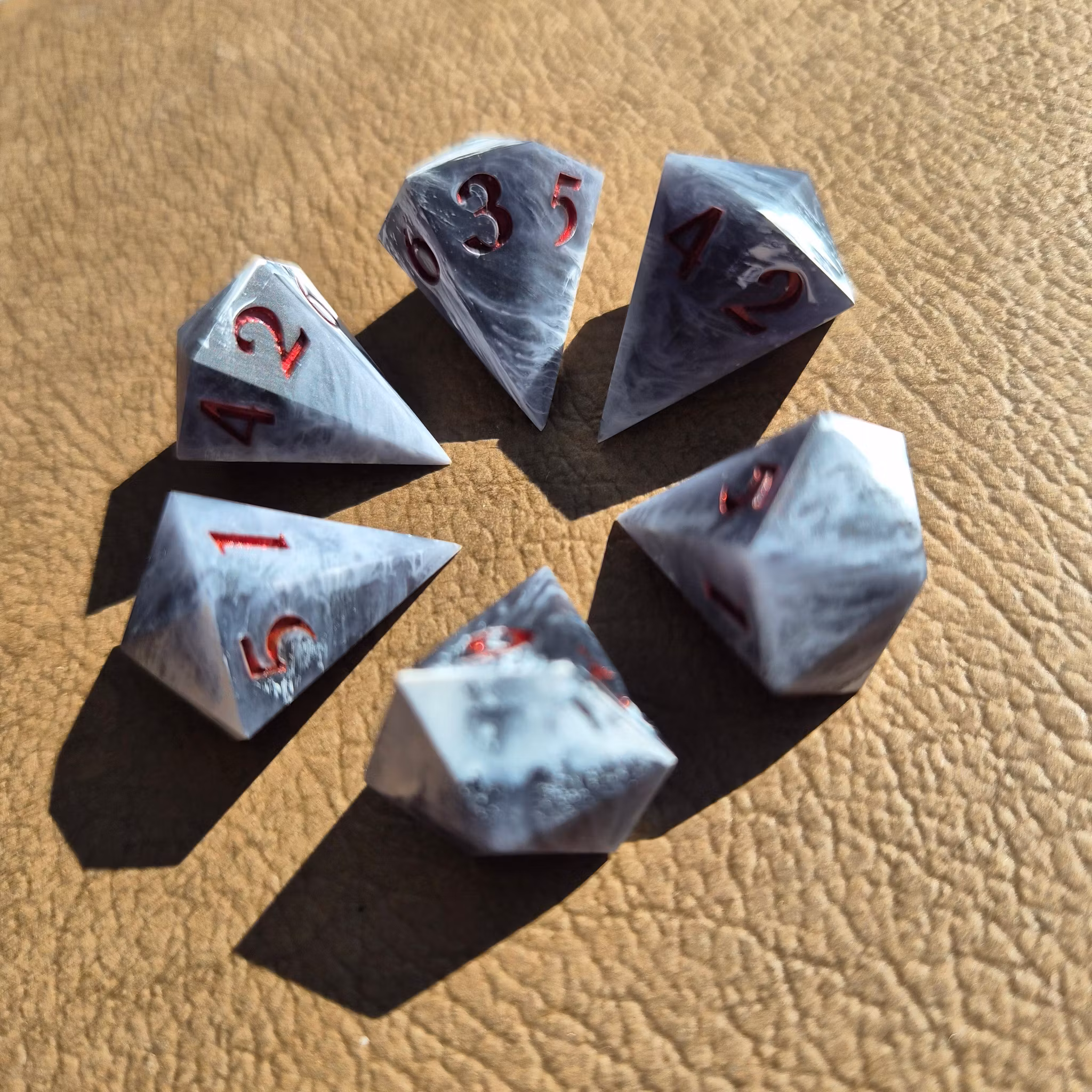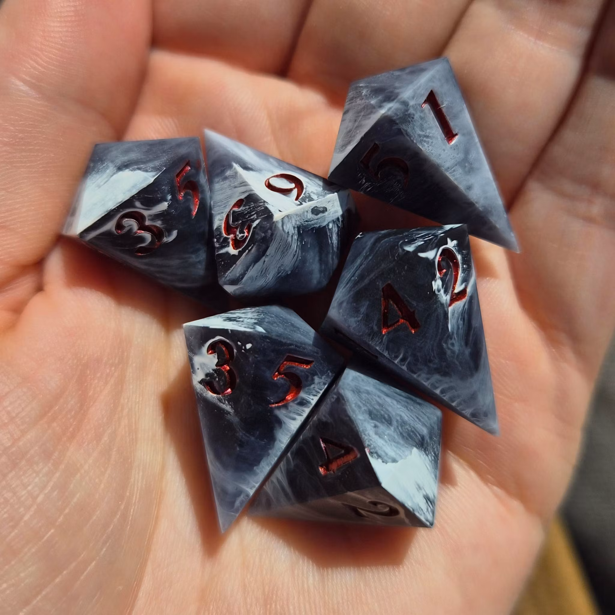 Note. These are handmade sharp-edge dice. Please take note that perfection is impossible. However, I try my best to ensure they are quality dice. Minor marks are most prominent around the 1 face but are usually unnoticeable. I recommend rolling them on something that has a soft surface.