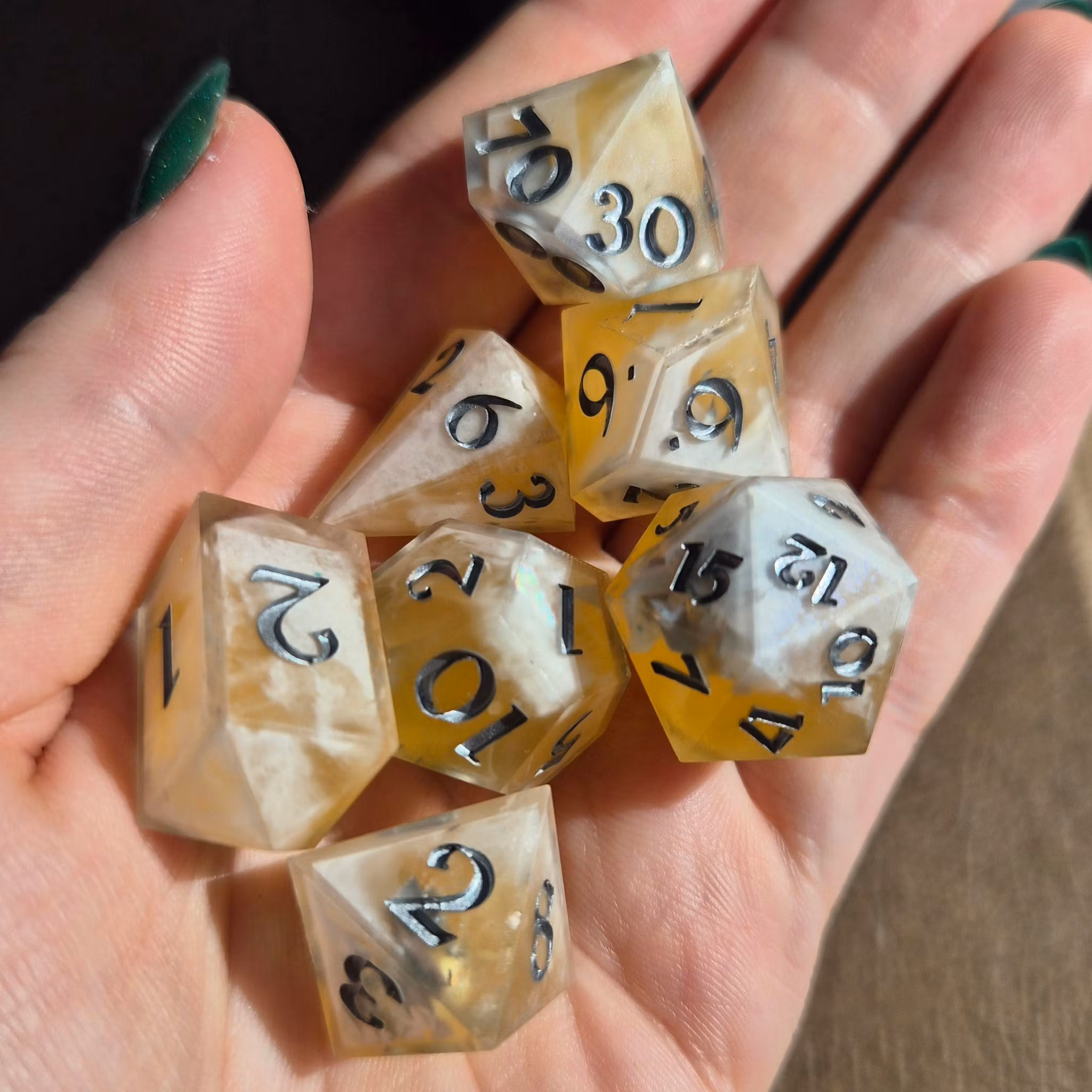 Note. These are handmade sharp-edge dice. Please take note that perfection is impossible. However, I try my best to ensure they are quality dice. Minor marks are most prominent around the 1 face but are usually unnoticeable. I recommend rolling them on something that has a soft surface.