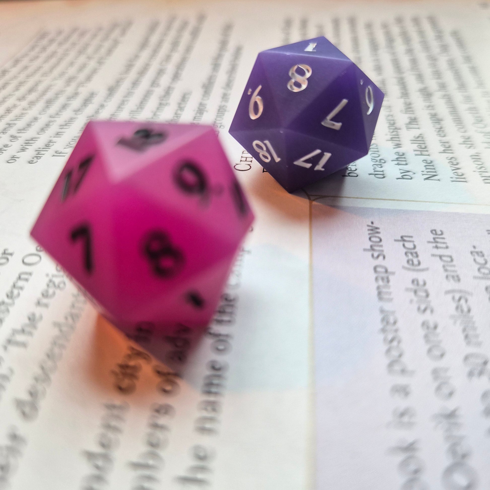 This spin-down duo features one pink spin-down with black numbers, and one purple spin-down with white numbers, both polished to a matte soft-touch finish✨These feature a simpler design that match some of D6 sets available.