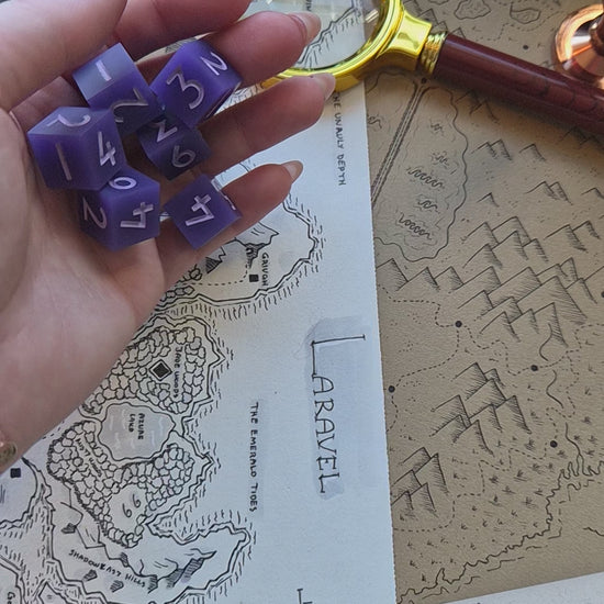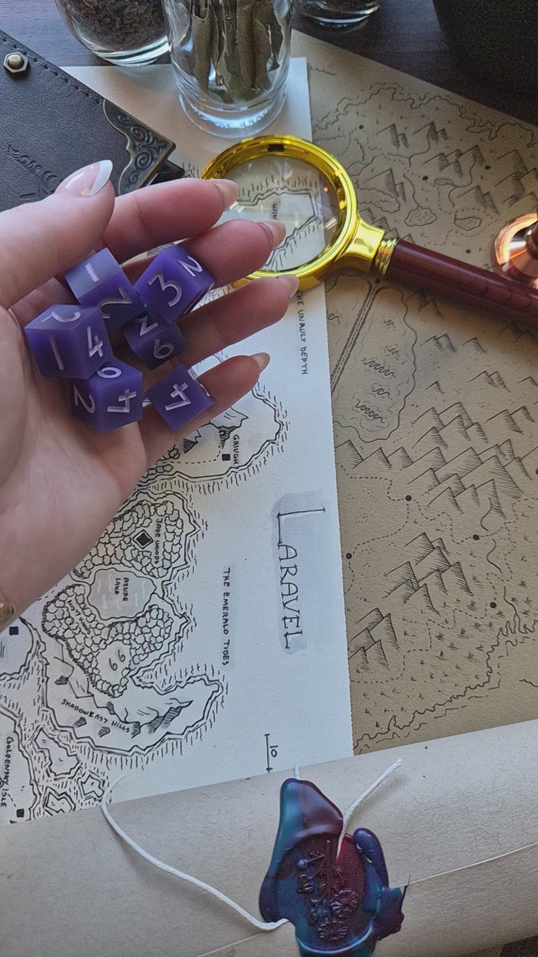This opaque purple D6 set with lavender numbers are perfect for your cosy game of Yatzy in this dark winter nights, or perhaps a game of Warhammer. Polished to a matte finish, the dice have a nice soft-touch feel with contrasting sharp edges✨